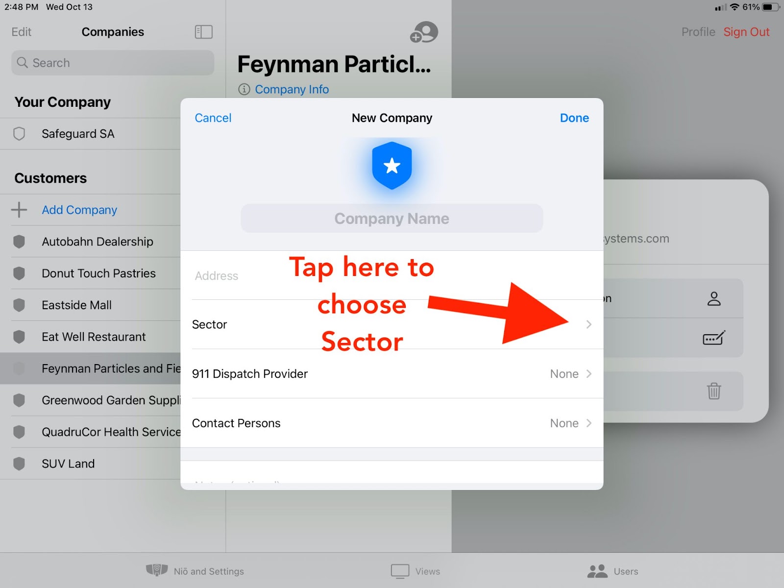 Your agency might have chosen to group companies into different sectors, either by geography, or other criteria. If not, or you’re not sure which sector to choose, select Default Sector. The sector can easily be changed later by editing the company information.