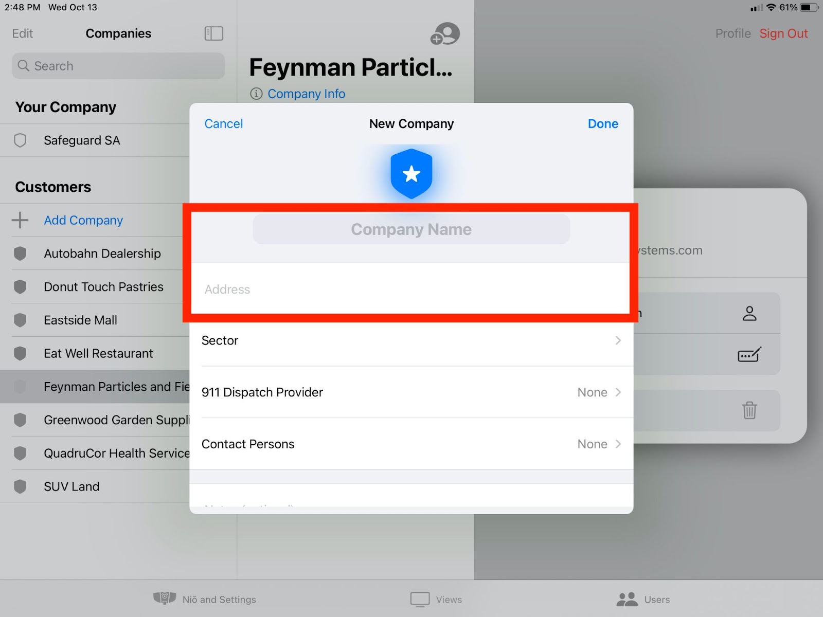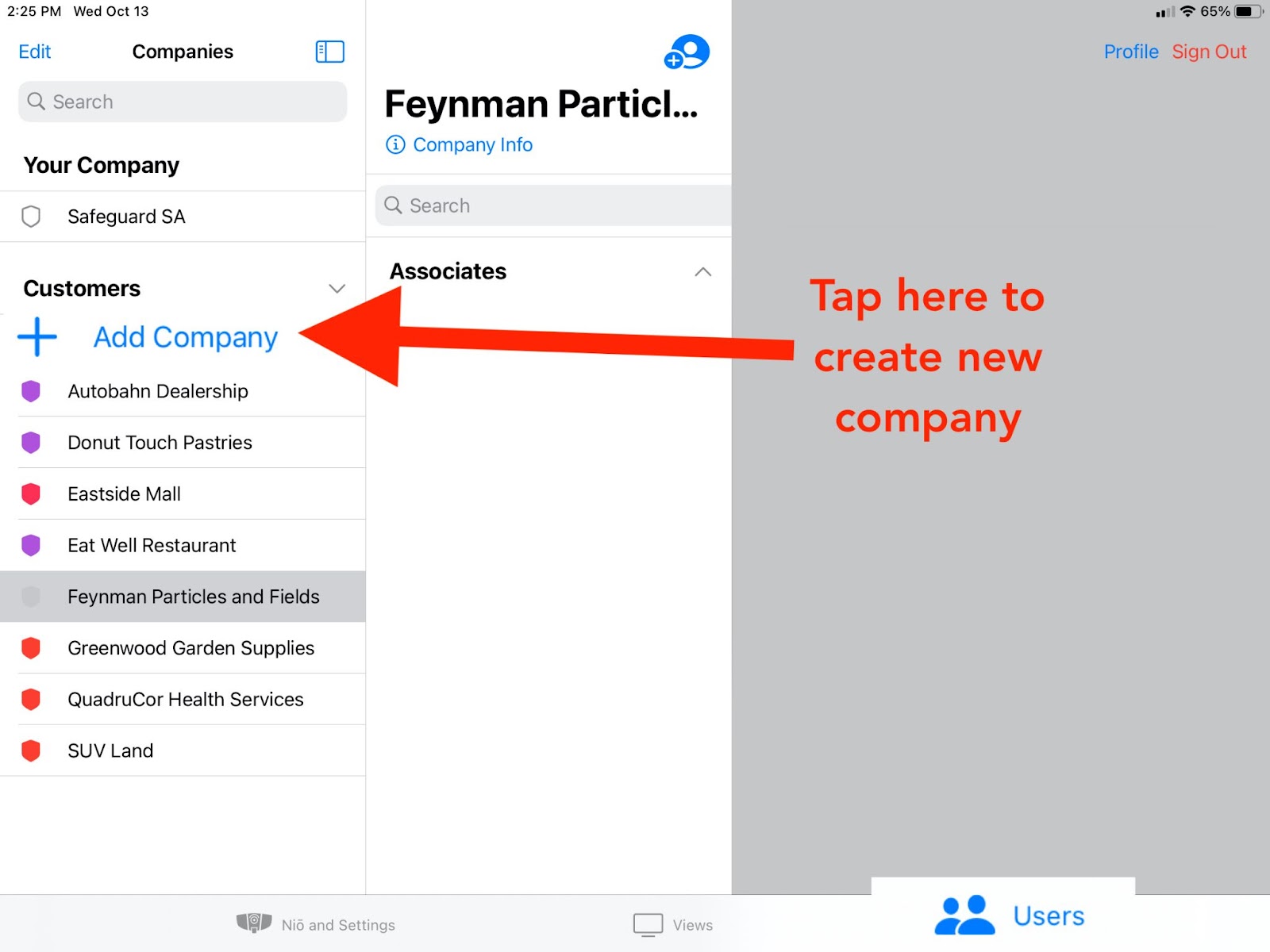 On the Users page of the iDter App, under Customers, select “Add Company”. This will open a new company profile.