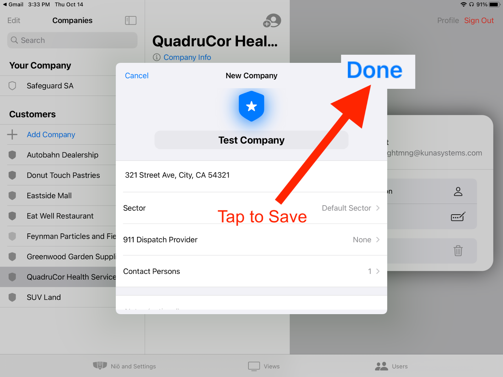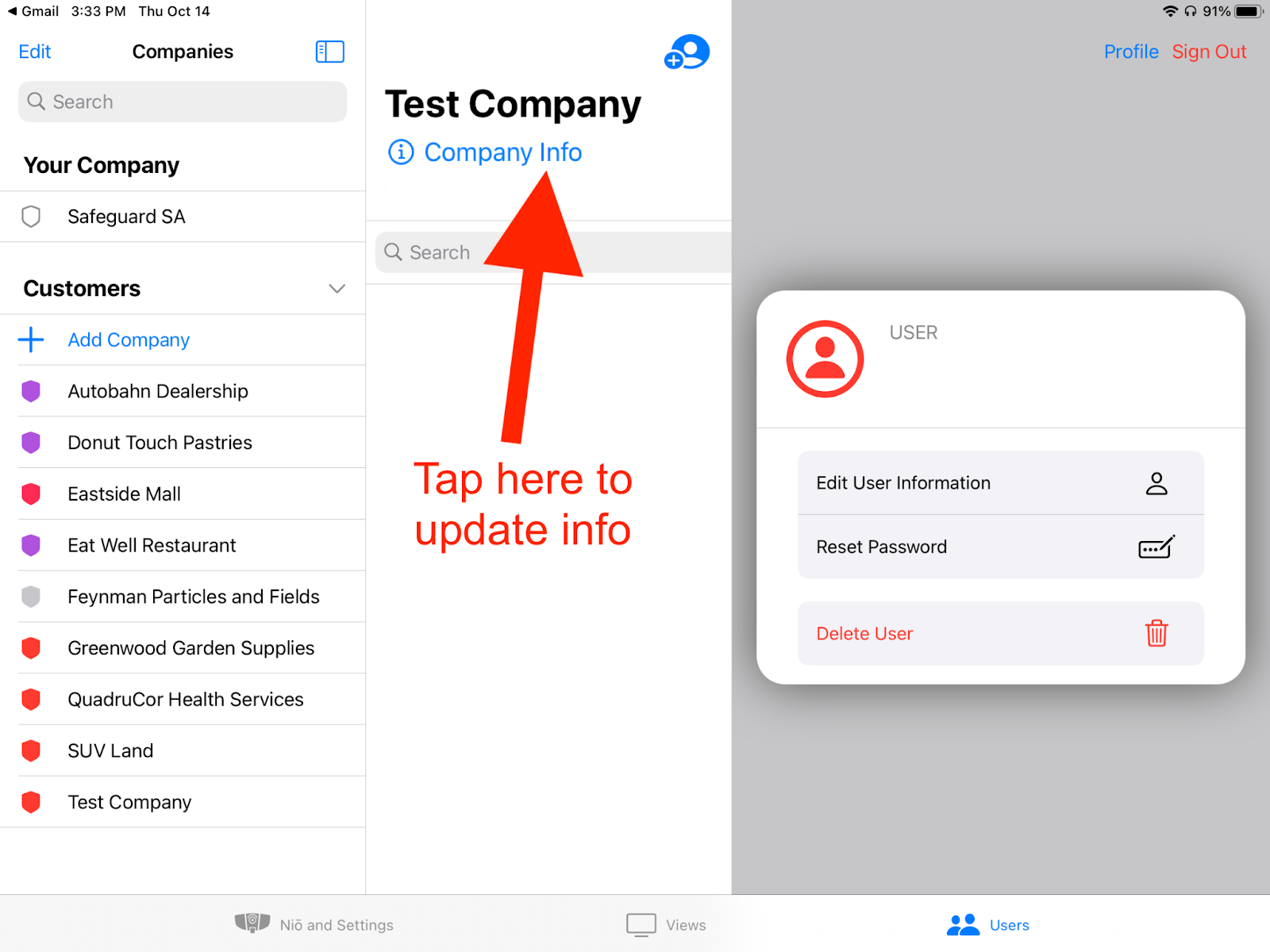 The new company will now appear in your list of customers. You can also edit the company information by selecting “Company Info” on the company profile page.